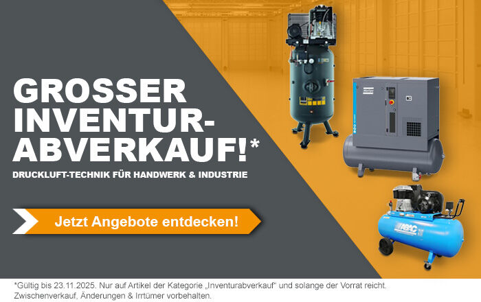Neben der elektrischen Energie ist Druckluft in Industrie und Handwerk der am weitesten verbreitete Energieträger. Klammern, nageln, schleifen, lackieren oder Reifendruck prüfen – es kommt immer auf das richtige Druckluft-Werkzeug und den dazu passenden Kompressor an. Unser Fachhandel bietet hier für jede Anforderung und jeden Einsatz die optimale Lösung. Unser Kompressor-Angebot im Shop reicht von leichten und handlichen Basis-Modellen bis hin zu extrem leistungsstarken Kompressoren für anspruchsvolle Einsätze.