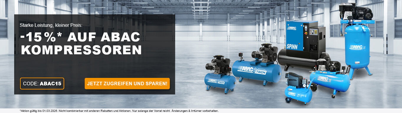 Als Druckluft Shop bieten wir Ihnen an 365 Tagen im Jahr ein umfangreiches Produktspektrum rund um die Druckluft an. Sie finden bei uns Kompressoren, Druckluft-Werkzeuge und vieles mehr von bekannten Qualitätsherstellern der Druckluft-Branche. Zu unseren Lieferanten zählen namhafte Firmen, wie Renner Kompressoren, Schneider Druckluft, Prebena, Jun-Air, Riegler, Rodcraft, Prevost, Gentilin und Condor. Unser Online-Fachhandel bietet Ihnen über 200.000 Produkte in folgenden Kategorien: